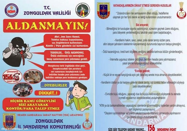 Kdz.Ereğli İlçe Jandarma Komutanı Tufan, köylerde vatandaşların, dolandırıcılık, hırsızlık ve pat pat kullanımına yönelik daha duyarlı olmaları yönünde bilgi verdi. Tufan; vatandaşlarımızın kapıdan ve telefonla dolandırıcılığın son dönemlerde özellikle arttığını belirtti.