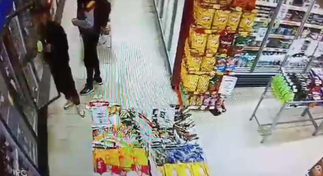 Karadeniz Ereğli ilçesi Orhanlar Mahallesi'ndeki bir mağazada yaşanan olay saniye saniye marketin güvenlik kamerasına yansıdı. Markete giren ve ismi öğrenilemeyen bir kişi, dolaptan aldığı alkollü içeceklerle kasanın bulunduğu çıkış istikametine yöneldi.