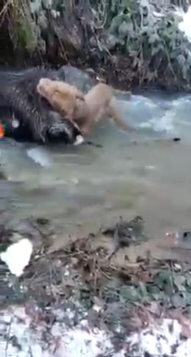Zonguldak’ın Devrek ilçesinde domuzla köpeklerin boğuşma anı cep telefonu ile saniye saniye görüntülendi.