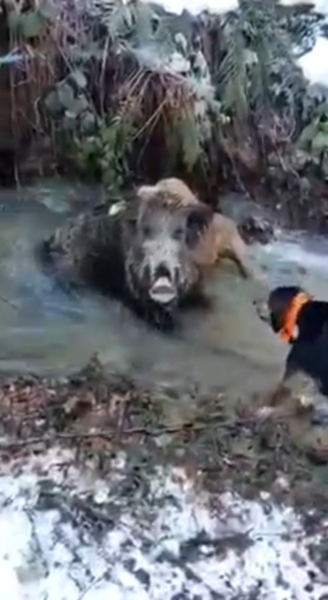 Olay Devrek ilçesine bağlı Ahmetoğlu köyünde meydana geldi. Köyde yaşayan Ramazan Tüysüz, Aytekin Kaya ve Muharrem Sarıcam isimli 3 avcı domuz avı için Buldandere mevkiine geldiklerinde domuz ile karşılaştı. Av tüfeğinden çıkan kurşunlarla yaralanan domuza av köpekleri saldırdı. Yaklaşık 5 dakika süren boğuşmanın ardından domuz avcılar tarafından etkisiz hale getirildi. Köpekler ile domuzun boğuşma anı ise cep telefonu ile görüntülendi.