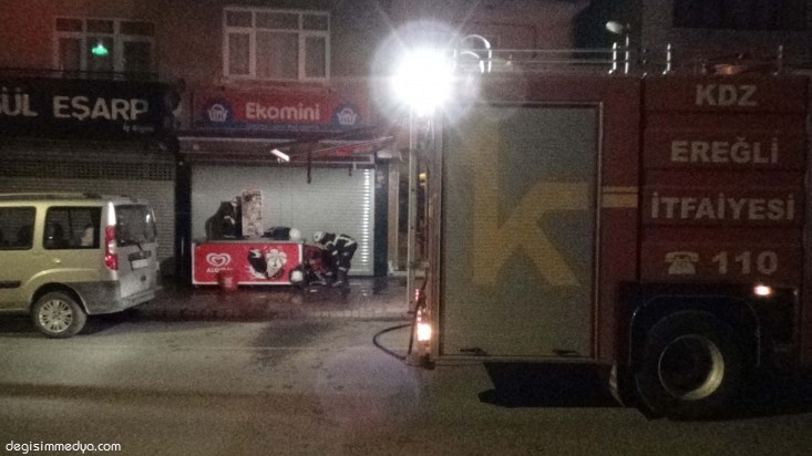 Zonguldak'ın Ereğli ilçesinde bir iş yerine ait dondurma dolabında çıkan yangın itfaiye ekiplerinin müdahalesi ile söndürüldü.