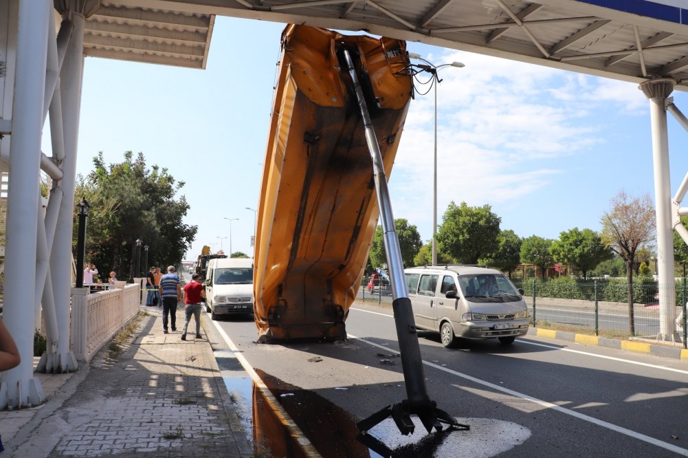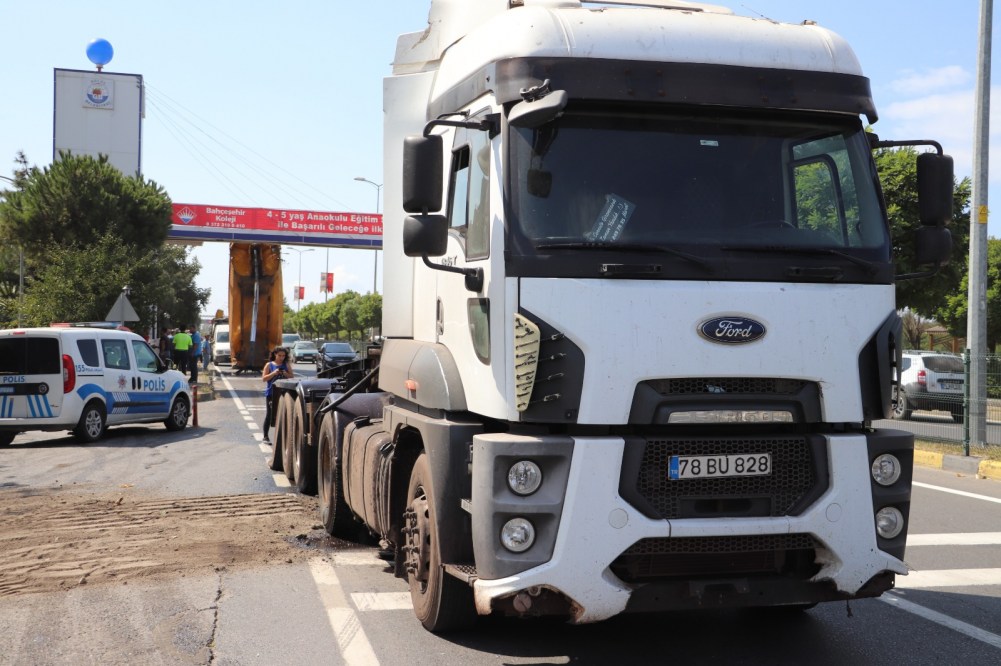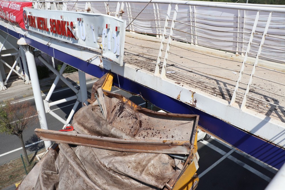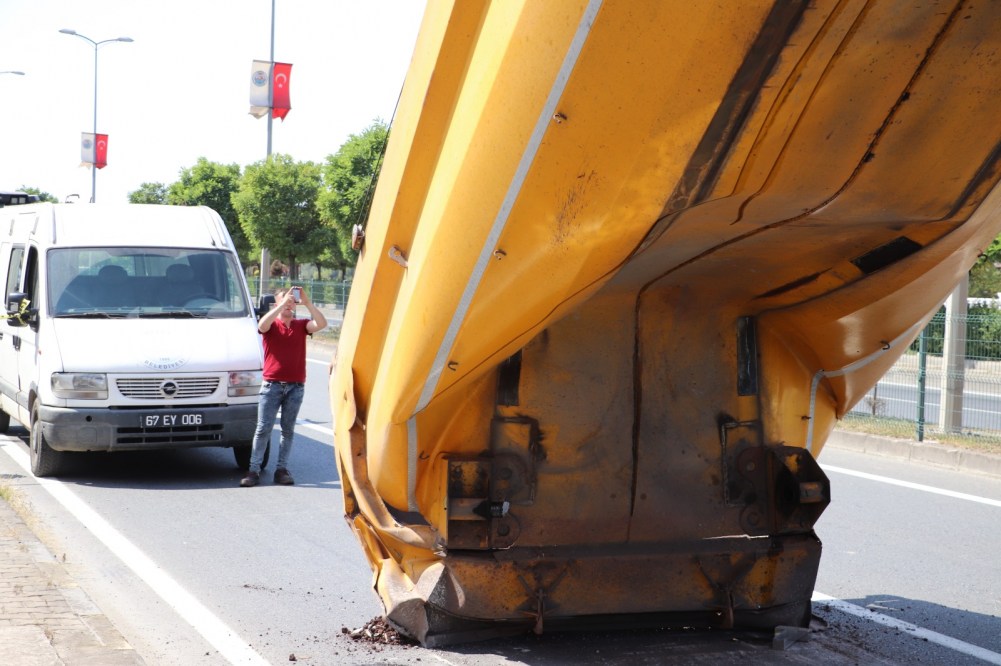 Olay 13.00 sularında Gülüç beldesi sahil yolunda meydana geldi. Alına bilgilere göre ERDEMİR’e yük boşalttıktan sonra çarşı istikametine giden Murat Erdoğan’ın (28) kullandığı 78 BV 227 Dorse 78 BU 828 plakalı TIR’ın açılan DORSE’si Türk Metal Sendikası tarafından Gülüç beldesinde yapılan üst geçide takıldı. Büyük bir gürültü ile kopan DORSE üst geçitte asılı kaldı. TIR ise yaklaşık 50 metre ileride durabildi. Olayın meydana gelmesinin ardından trafik ve karakol ekipleri yolda ve üst geçitte güvenlik önlemi aldı. Kopan DORSE üst geçide de zarar verirken, DORSE’nin kaldıırlması için çalışma başlatıldı. Kaza öncesi sürücü Murat Erdoğan’ın ERDEMİR Gülüç kapıdan yükünü boşalttıktan sonra çarşı istikametine gittiği sırada meydana geldiğini, DORSE’nin kalktığını fark etmediğini söylediği öğrenildi.
