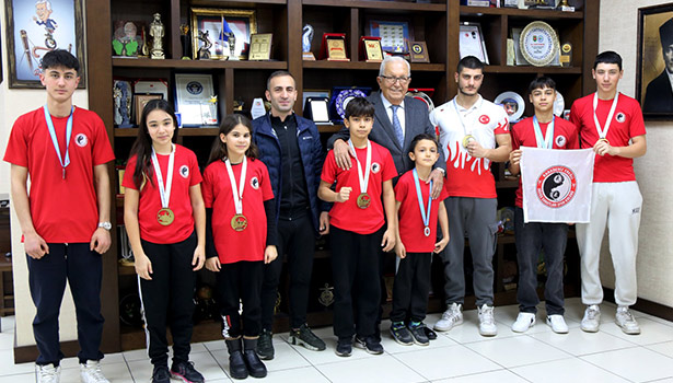 Karadeniz Ereğli Dövüş Sanatları Spor Kulübü’nden ulusal ve uluslararası başarı. Dereceye giren sporcular Karadeniz Ereğli Belediye Başkanı Halil Posbıyık'ı makamında ziyaret etti.,