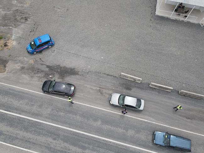 Zonguldak İl Jandarma Komutanlığı Trafik Jandarması Timlerince; seyir halinde cep telefonu kullanımı nedeni ile oluşabilecek kazaların azaltılması ve emniyet kemeri takılmaması nedeni ile meydana gelen ölümlerin engellenmesi amacıyla, yol kullanıcılarında “Algılanan Yakalanma Riski Duygusunun” sürekli ve üst düzeyde tutulabilmesi için dron ile denetimler icra edilerek bilgilendirmeler yapıldı. Zonguldak İl Jandarma Komutanlığınca, meydana gelebilecek trafik kazalarını önlemek ve sürücülerde yakalanma duygusunu üst düzeye çıkarabilmek için sorumluluk alanında bulunan karayollarında dron ile denetim ve kontrollere devam edileceği öğrenildi.