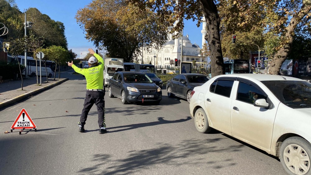 Zonguldak’ta Milli Egemenlik Caddesinde dronla trafik denetimi yapıldı.