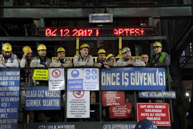 İşçiler, anma programının ardından kömür üretimi yapmak üzere yerin metrelerce
