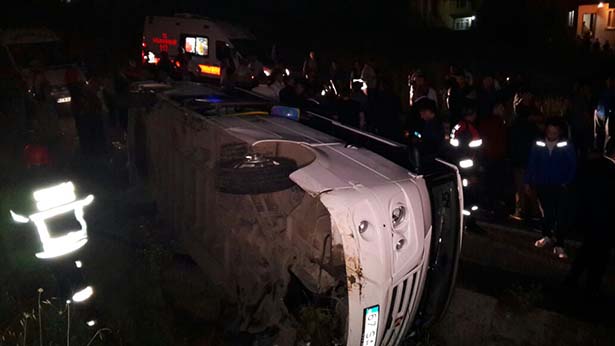 Kaza Ereğli Devrek Karayolu Aydınlar köyü mevkisinde meydana geldi. Alınan bilgilere göre Ereğli'den Ormanlı istikametine giden Sami Eraslan (26) idaresindeki 67 SA 859 plakalı minibüs ile karşı yönden gelen Hüseyin Acar (56) idaresinde ki 67 TU 484 plakalı otomobille kafa kafaya çarpıştı. Kazada minibüs yan devrilirken, yaralılar minibüsün camından dışarıya çıkarıldı.