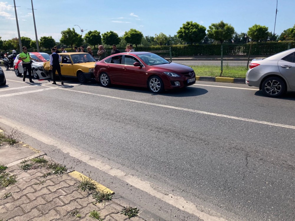 İddiaya göre düğün konvoyunda ki araçlar kazaya karıştı. 3 aracın karıştığı kazada yaralana olmadı. Kazadan dolayı yolun tek şeridi trafiğe kapanırken, hazırlanan tutanağın ve araçların kaldırılması ile birlikte trafik akışı normale döndü.