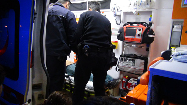 güçlükle kontrol altına alındıktan sonra ambulansa alındı. F.T.'nin kardeşi