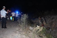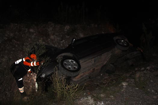 şarampole yuvarlandı. Yan yatan otomobildeki sürücü Turgay Çetinbaş, eşi Ruhan