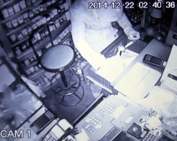 dükkandan çıkıyor. Beş dakika sonra yeniden iş yerine gelen maskeli hırsız
