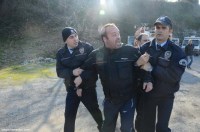 engel olmaya çalıştı. Zabıtalara engel olmaya çalışan Melih Demir'e polis