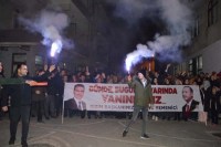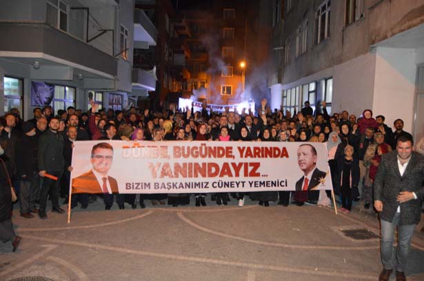 Yukarı Mahalle ve Osmaniye Mahallesi'nde vatandaşlarla bir araya gelen Yemenici'yi mahalle sakinleri konfeti ve meşalelerle karşıladı.