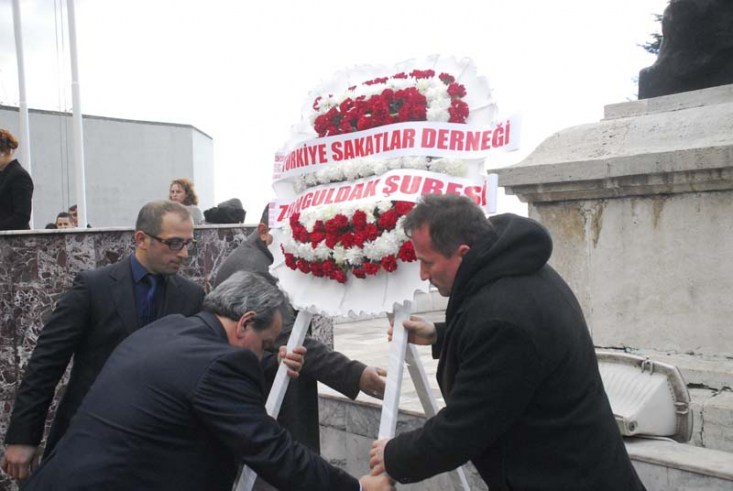 İstiklal Marşı'nın ardından Türkiye Sakatlar Derneği Zonguldak Şubesi Başkanı