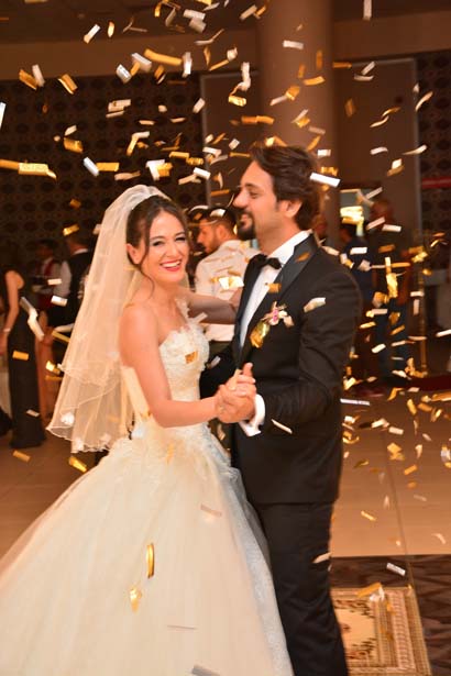 Gecenin geç saatlerine kadar süren düğün töreninde her iki ailenin eş ve dostları sahnede eğlenerek genç çifti bu mutlu günlerinde yalnız bırakmadı. Düğün pastasının kesilmesinin ardından genç çift ve konuklar seslendirilen şarkılar eşliğinde dans ederek gönüllerince eğlendiler.