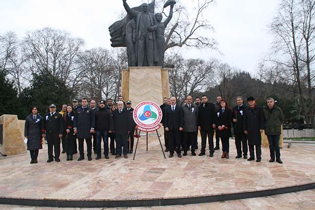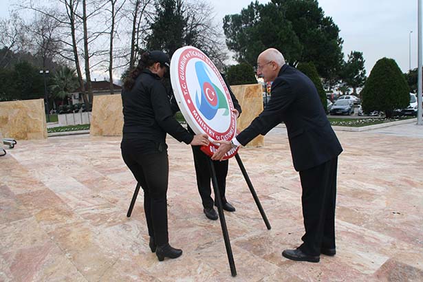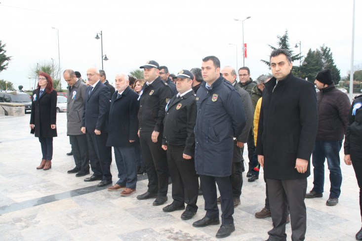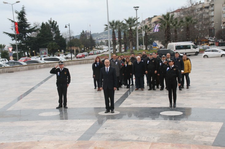 İlçede görev yapan gümrük ve liman görevlilerinin katıldığı törende, Karadeniz Ereğli Gümrük Müdürü Arif Kemal Eyüboğlu'nun, Atatürk Anıtı'na çelenk sunmasının ardından saygı duruşunda bulunuldu, İstiklal Marşı okundu.