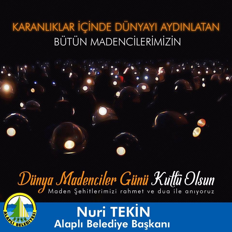 Alaplı Belediye Başkanı Nuri Tekin mesajında; “Karanlıklar içinde dünyayı aydınlatan bütün madencilerimizin Dünya Madenciler Günü kutlu olsun. Maden Şehitlerimizi rahmet ve dua ile anıyoruz” dedi.