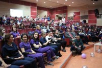 Ülkede her yıl 1 milyon 300 bin çocuğun doğduğunu bunların yaklaşık yüzde 10' unun prematüre doğduğunu belirten BEÜ Tıp Fakültesi Yenidoğan Bilim Dalı Öğretim Üyesi Doç. Dr. Cumhur Aydemir "17 Kasım Dünya Prematüre günü olması nedeniyle kliniğimizde tedavi görmüş prematüre bebeklerimiz, aileleri ve çalışanlarımızla bir araya geldik. Prematürelik yenidoğan bebekler için önemli bir sorundur. Her yıl yaklaşık 50 bin çocuk çok ağır prematüre dediğimiz 3. düzey yoğun bakım ihtiyacı olan bebek olarak doğmaktadır. Ünitemizde de 3. düzey yoğunbakım servisi olarak Batı Karadeniz bölgesindeki en yoğun 3. Düzey yoğun bakım ünitesi olarak hizmet vermekteyiz. Prematüre bebeklerin yeni doğan yoğun bakım ünitesi, 3. düzey yenidoğan yoğunbakım ünitesi ve yenidoğan uzmanları tarafından takip edilmesi gerekmektedir. Sorunların daha iyi ve hızlı bir şekilde çözülebilmesi için dünya prematüre gününde bu soruna farkındalık oluşturmak ve ailelerle iletişim içerisinde olmak amacıyla etkinlik düzenledik. 1000 gramdan daha düşük ağırlıkta doğmuş bebeklerimizi burada büyüdüğünü, yürüdüğünü görmek bizi mesleğimizde ayakta tutan şeyler. Zonguldak'ın merkez nüfusu düşük olsa da 1 milyon nüfuslu bir alana yenidoğan yoğunbakımı hizmeti vermeye çalışıyoruz. Bugün burada hepimiz prematürenin rengi olan mor renk elbiseler giydik veya mor aksesuarlar taktık. Ama bizim amacımız çocuklarımızın hayatları boyunca morarmadan, sıkıntı yaşamadan bakımlarına yardımcı olmaktır" dedi.