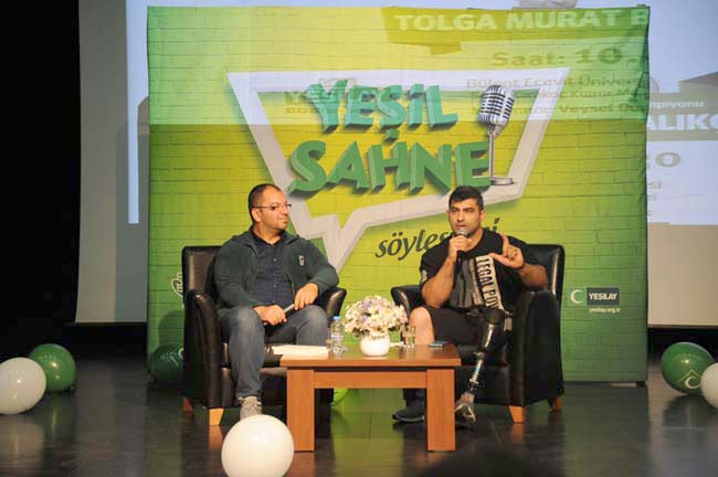 Türkiye Yeşilay Cemiyeti, yaşamlarıyla örnek olan, deneyimleriyle gençlere yol gösterecek medya, sanat, spor alanından ünlü isimleri gençlerle buluşturmayı amaçlayan Yeşil Sahne projesine bu yıl Bülent Ecevit Üniversitesi’ni de dâhil ederek millî sporcu Tolga Murat Balıkçı’yı gençlere bir araya getirdi.