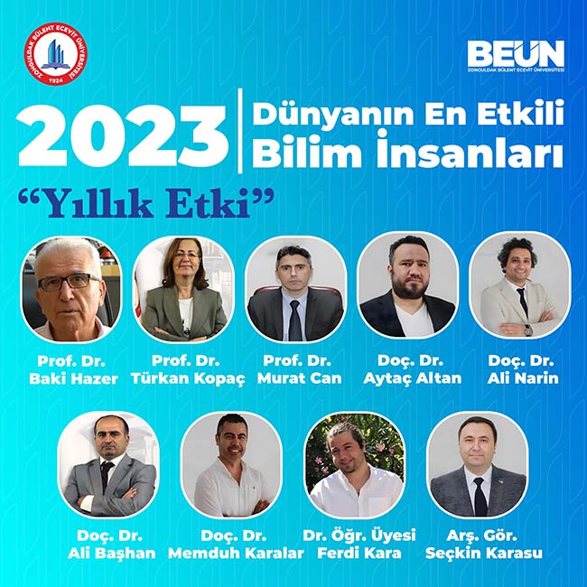 Yayımlanan listede BEUN Fen Fakültesinden emekli öğretim üyesi Prof. Dr. Baki Hazer, Prof. Dr. Türkan Kopaç ve Doç. Dr. Ali Başhan, Tıp Fakültesinden Prof. Dr. Murat Can ve Mühendislik Fakültesinden Doç. Dr. Aytaç Altan, Doç. Dr. Ali Narin, Doç. Dr. Memduh Karalar, Dr. Öğr. Üyesi Ferdi Kara ve Arş. Gör. Seçkin Karasu yer aldı. "Dünyanın En Etkili Bilim İnsanları" listesi içerisinde yer alan “Yıllık Etki” kategorisinde Türkiye’den toplam 1.518 isim yer aldığı listede, Zonguldak Bülent Ecevit Üniversitesinden 9 akademisyen yer aldı. Ayrıca Türkiye’den toplam 1.172 ismin yer aldığı “Kariyer Boyu Etki” kategorisinde ise 3 BEUN’lu akademisyen yer aldı.