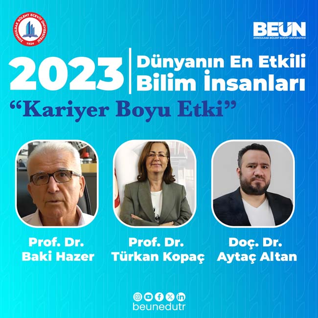 Elsevier ve Stanford Üniversitesi iş birliğiyle yıllık olarak açıklanan "Dünyanın En Etkili Bilim İnsanları" 2023 listesinde “Yıllık Etki” kategorisinde BEUN’dan 9 akademisyen, “Kariyer Boyu Etki” kategorisinde ise 3 akademisyen yer aldı. Elsevier ve Stanford Üniversitesi tarafından yapılan iş birliğiyle her yıl dünyanın en etkili bilim insanlarının yer aldığı listenin 2023 yılı sonuçları açıklandı. Çalışmada dünya genelinde “Yıllık Etki” kategorisinde 223.152 bilim insanı, “Kariyer Boyu Etki” kategorisinde ise 217.097 bilim insanı listelendi. Sıralama, akademisyenlerin nitelikli yayın sayıları ve bu yayınlara yapılan atıf sayısı, patent sayısı, h-indeks, hm-indeks gibi nesnel ölçütleri temel alınarak düzenleniyor.