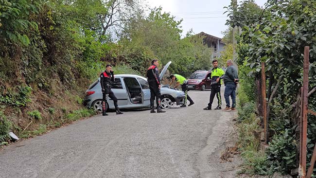 . "Dur" ihtarına uymayıp kaza yapan sürücü yaya olarak kaçmaya çalıştı. Şahıs jandarma tarafından yakalandı.