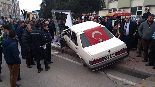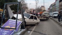 çalışan şahıs, otomobille reklam panosuna çarptı. Kazada reklam panosu hasar
