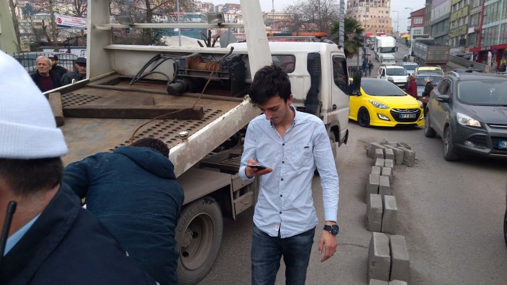 ekipleri nezaretinde çekiciye alınırken olay yerine gelen C.K, otomobilin