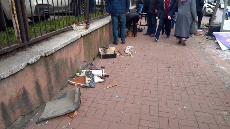 görürken kaldırımdaki ağaç söküldü. Kaldırım kenarındaki bir boya sandığı da