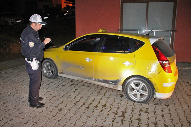 Zonguldak'ın Ereğli ilçesinde, polisin 'Dur' ikazına uymayan ticari taksi sürücüsü polisten kaçmak istedi. Polisin üzerine aracını süren taksi sürücüsü, otomobil lastiğinin açılan ateş sonucu patlamasıyla kaçamadı. Ticari taksi sürücüsü E.K., yapılan alkol muayenesinde 1.10 promil alkollü çıktı.