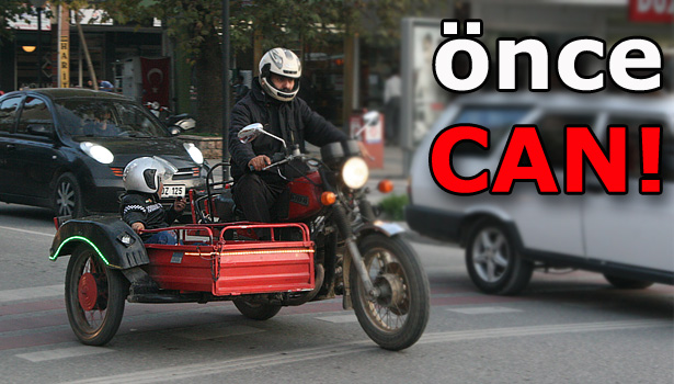 Trafiğe çıkan motosiklet ve bisiklet sürücülerinin kask takması zorunlu olduğu halde, birçok sürücü bu kurala gerektiği gibi riayet etmiyor. Bisiklet ve motosiklet kullanımının bir hayli yaygın olduğu Düzce'de, bu araçların karıştığı ölümlü ve yaralamalı kaza sayısında artış gözleniyor. Düzce'de duyarlı bir vatandaş, kaza riskine karşı sepetli motosikletiyle trafiğe çıkarken sadece kendisi değil, oğluna da kask taktırmış. Böylece trafikteki muhtemel kaza tehlikesine karşı gereken tüm önlemleri alarak diğer sürücülere örnek olmuş. Öte yandan kırmızı ışıkta yanlarında duran başka bir motosiklete binmiş iki genç ise kasksız olarak dikkat çekiyor.