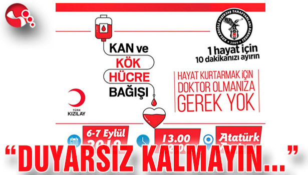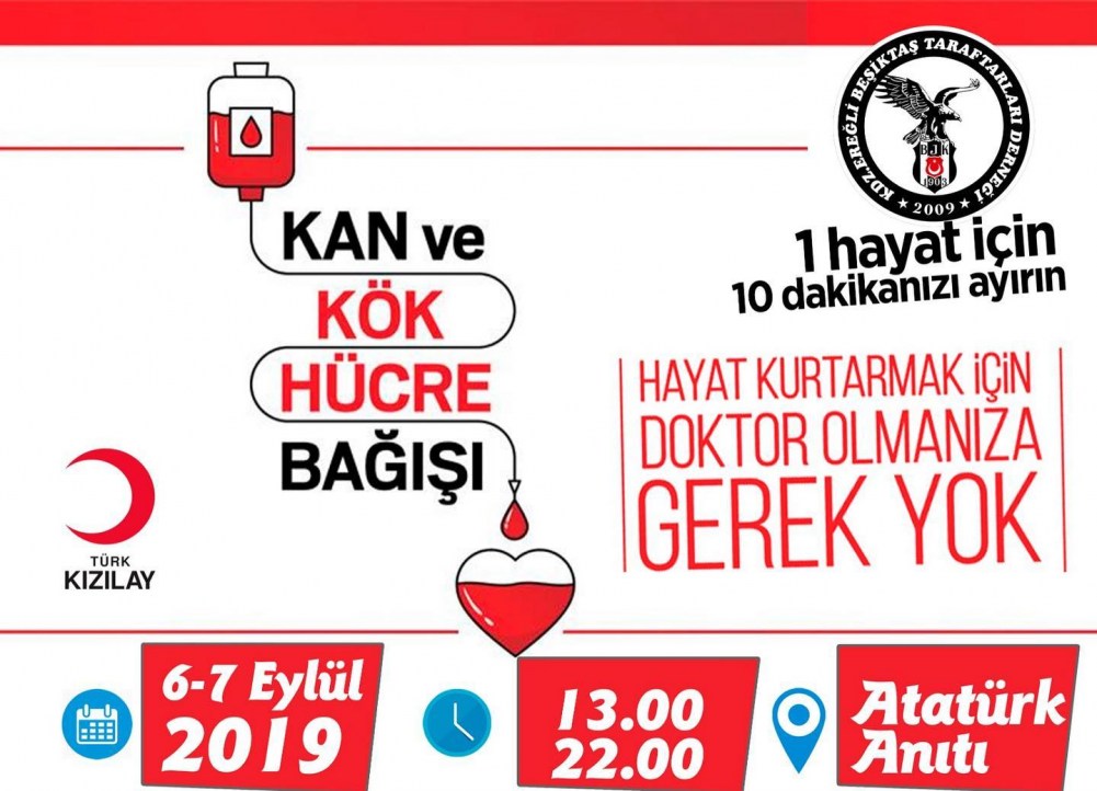 "Kdz. Ereğlimizde lösemi teşhisi konulan Banu Uzun kardeşimizin ve diğer ilik nakli bekleyen tüm lösemili kardeşlerimiz için 6-7 Eylül tarihlerinde saat 13.00 - 22.00 saatleri arasında Kdz. EREĞLİ Atatürk anıtında büyük bir kök hücre ve kan kampanyası düzenlenecektir. Tüm sivil toplum örgütleri, değerli basın mensuplarını ve tüm duyarlı halkımızı kampanyamıza destek olmaya davet ediyoruz. "