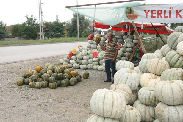 kenarında Kapıcı Sapağı mevkiinde açtığı tezgahın da yetiştirdiği kabakları