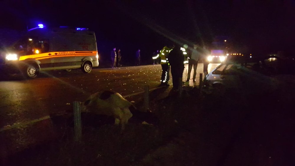 Kaza 18.30 sularında Düzce Kuzey bağlantı yolunda meydana geldi. Alınan bilgilere göre alkollü olduğu iddia edilen 81 DH 470 plakalı otomobil sürücüsü yoldaki ineğe çarptıktan sonra bariyerleri parçalayarak su kanalına düştü. Araç sürücüsü ile yanındaki yolcusu yaralanırken yaralılar için sağlık ekiplerine haber verildi. Olay yerine gelen 112 ekipleri iki yaralıya ilk müdahaleyi yaptıktan sonra Düzce Devlet hastanesine kaldırdı. Telef olan inek ise su kanalına alınarak yol trafiğe açıldı. Kaza ile ilgili soruşturma başlatıldı.