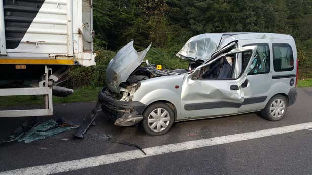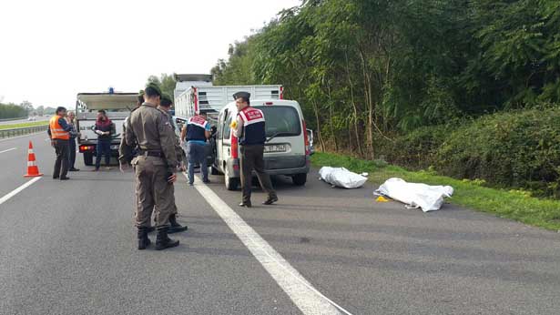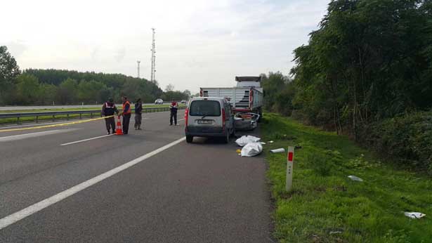 TEM Otoyolu Düzce kesiminde meydana gelen trafik kazasında, TIR'a arkadan çarpan hafif ticari araçta bulunan 2 kişi hayatını kaybetti.