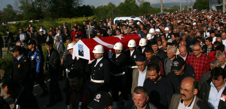 sarılı tabutun önünde Düzce İl Emniyet Müdürü Ayhan Buran, Sakarya Emniyet