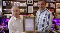 Akçakoca Belediye Başkanı Cüneyt Yemenici, Düzce'de Yılın Ahisi seçilen Akçakocalı esnaf İbrahim Vural'ı dükkanında ziyaret ederek teşekkür plaketini takdim etti.