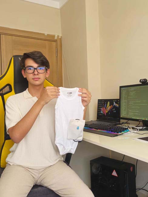 16 yaşındaki Egehan, Yapay Zeka Destekli Giyilebilir Bebek Kıyafeti ile dünya birincisi oldu .