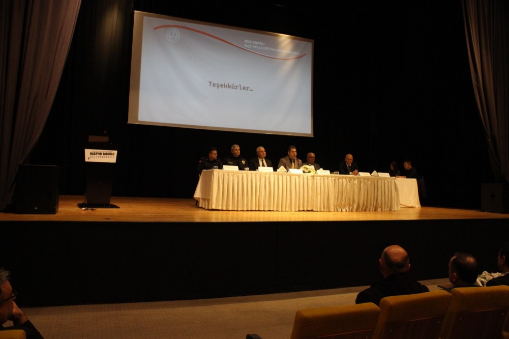 Hüseyin Tatoğlu Kültür Merkezinde düzenlenen toplantıya; Kdz. Ereğli Belediye Başkanı Halil Posbıyık, İlçe Emniyet Müdürü Hasan Ünlü, İlçe Jandarma Komutanı Emrah Dinar, İlçe Sağlık Müdürü Dr. Sezer Çetinkaya, İlçe Millî Eğitim Müdürü Harun Akgül, Kdz. Ereğli İlçe Millî Eğitim Şube Müdürleri Ümmü Gülsüm Dedeşah, Yakup Sarıgül ve Reşat Atar, ilgili kurum amirleri, okul yöneticileri, sivil toplum kuruluşları ile diğer paydaş kurum temsilcileri katıldı.