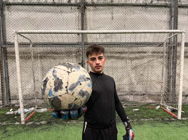 Düzce'de üniversite öğrencisi Emre Yılmaz, Türkiye'de yaygın bir spor kültürü olan halı saha maçlarında oyuncuların genellikle tercih etmediği kaleci pozisyonundaki açığı değerlendirerek eğitim masraflarına katkı sağlıyor.