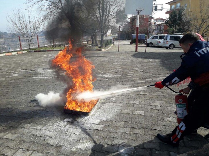 öncelikle olmak üzere yangın eğitimlerinde öğrencilerimiz ve öğretmenlerimize
