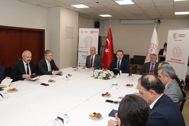 Zonguldak Öğretmenevi ve Akşam Sanat Okulu’nda (ASO) düzenlenen toplantı, İl Millî Eğitim Müdürü Uygar Keskin başkanlığında yapıldı. Toplantıya İl Millî Eğitim Müdür Yardımcıları, şube müdürleri ve ilçe millî eğitim müdürleri katılım sağladı.