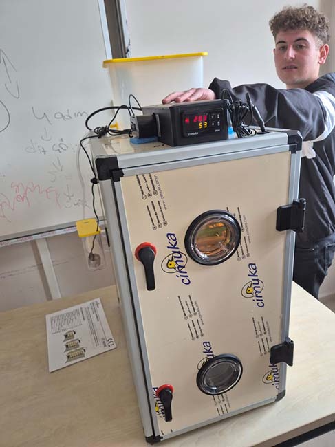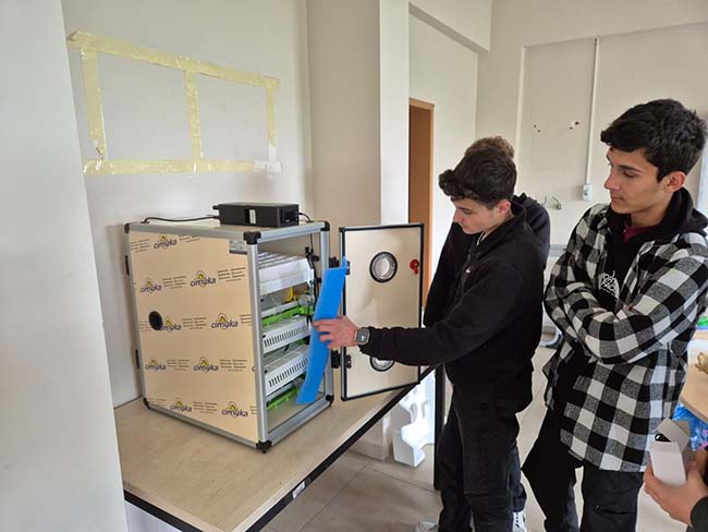 Ayrıca Okulumuzun Hayvan Yetiştiriciliği ve Sağlığı Alanına kazandırdığı kuluçka makinesi ile öğrencilerimizin uygulamalı eğitimlerini güçlendiren, mesleki becerilerine katkı sunan Rıfat Bey’in bu kıymetli katkıları sayesinde; öğrencilerimiz yalnızca üretimi değil, sanatı da hissederek öğreniyor; hem bilimle hem estetikle gelişen bir eğitim ortamında büyüyorlar.