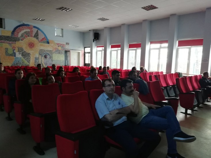 Teknik Anadolu Lisesi öğretmenleri okulun konferans salonunda 6 saatlik teorik bilgi gördükten sonra Kışla