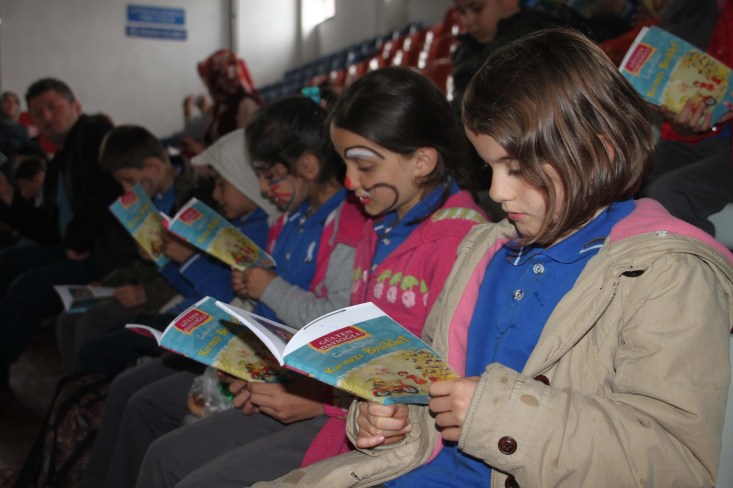 köy okulu var Ereğli'de. Onlara kitap okuma şenliği yapmak amacıyla topladık