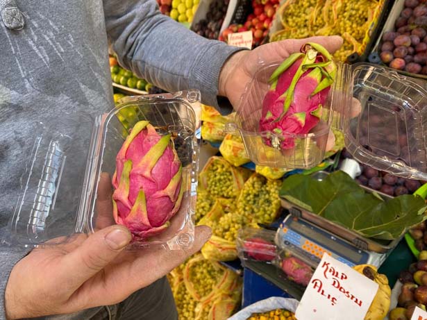Cumhurbaşkanı Recep Tayyip Erdoğan’ın da tattığı ejder meyvesi vatandaşların ilgi odağı oldu. Vitamin ve mineral deposu olan ejder meyvesi tezgahlarda tanesi 20 TL’den satılmaya başlandı.