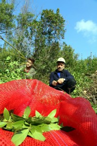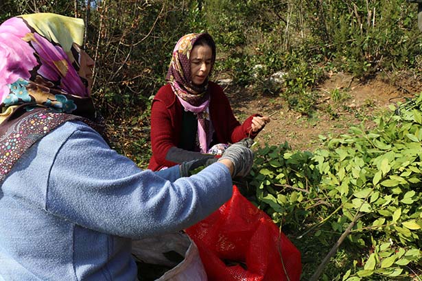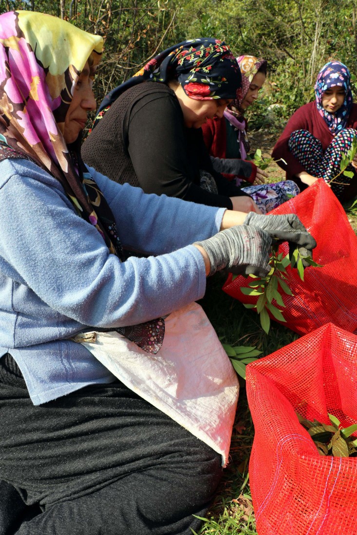 Gelik beldesinde ikamet eden vatandaşlar, topladıkları defne yapraklarını