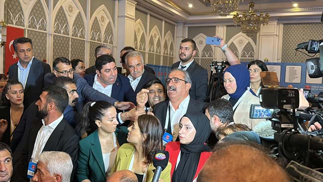 “Eskişehir Büyükşehir Belediye Başkanı Ayşe Ünlüce, Aydın Büyükşehir Belediye Başkanı Özlem Çerçioğlu, Mersin Büyükşehir Belediye Başkanı Vahap Seçer, Adıyaman Belediye Başkanı Abdurrahman Tutdere, Edirne Belediye Başkanı Filiz Gencan Akın, Zonguldak Belediye Başkanı Tahsin Erdem, Artvin Belediye Başkanı Bilgehan Erdem, Keçiören Belediye Başkanı Mesut Özarslan, Büyükçekmece Belediye Başkanı Hasan Akgün, Selçuk Belediye Başkanı Filiz Ceritoğlu Sengel, Mardin Büyükşehir Belediye Başkanı Ahmet Türk, Diyarbakır Büyükşehir Belediye Başkanı Ayşe Serra Bucak, Nevşehir Belediye Başkanı Rasim Arı, Şanlıurfa Büyükşehir Belediye Başkanı Mehmet Kasım Gülpınar.”