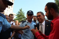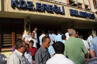 başta olmak üzere partililer Belediye binasına akın etti. Belediye binasında