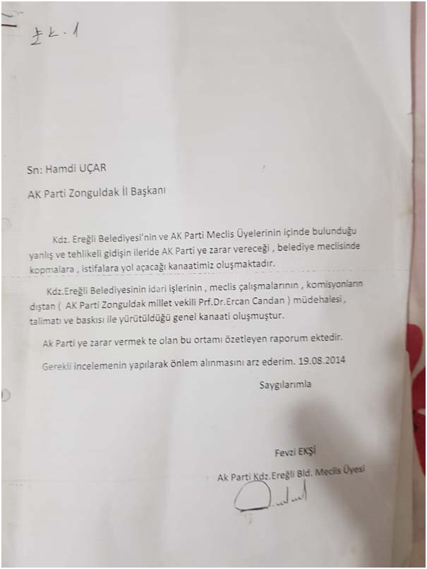 Bu üst yazı ektedir. Ben belediye meclis üyesi olarak Sn. Mustafa Baloğlu, sn. Erol